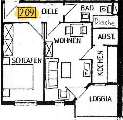Apartment 209 is on the 2nd floor and has 46 square meters